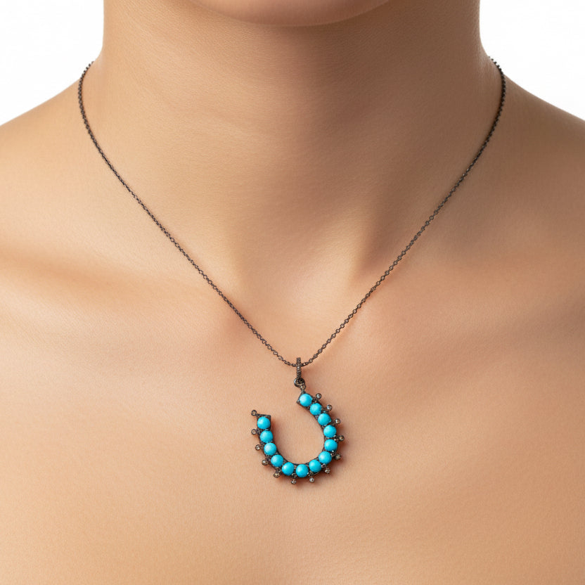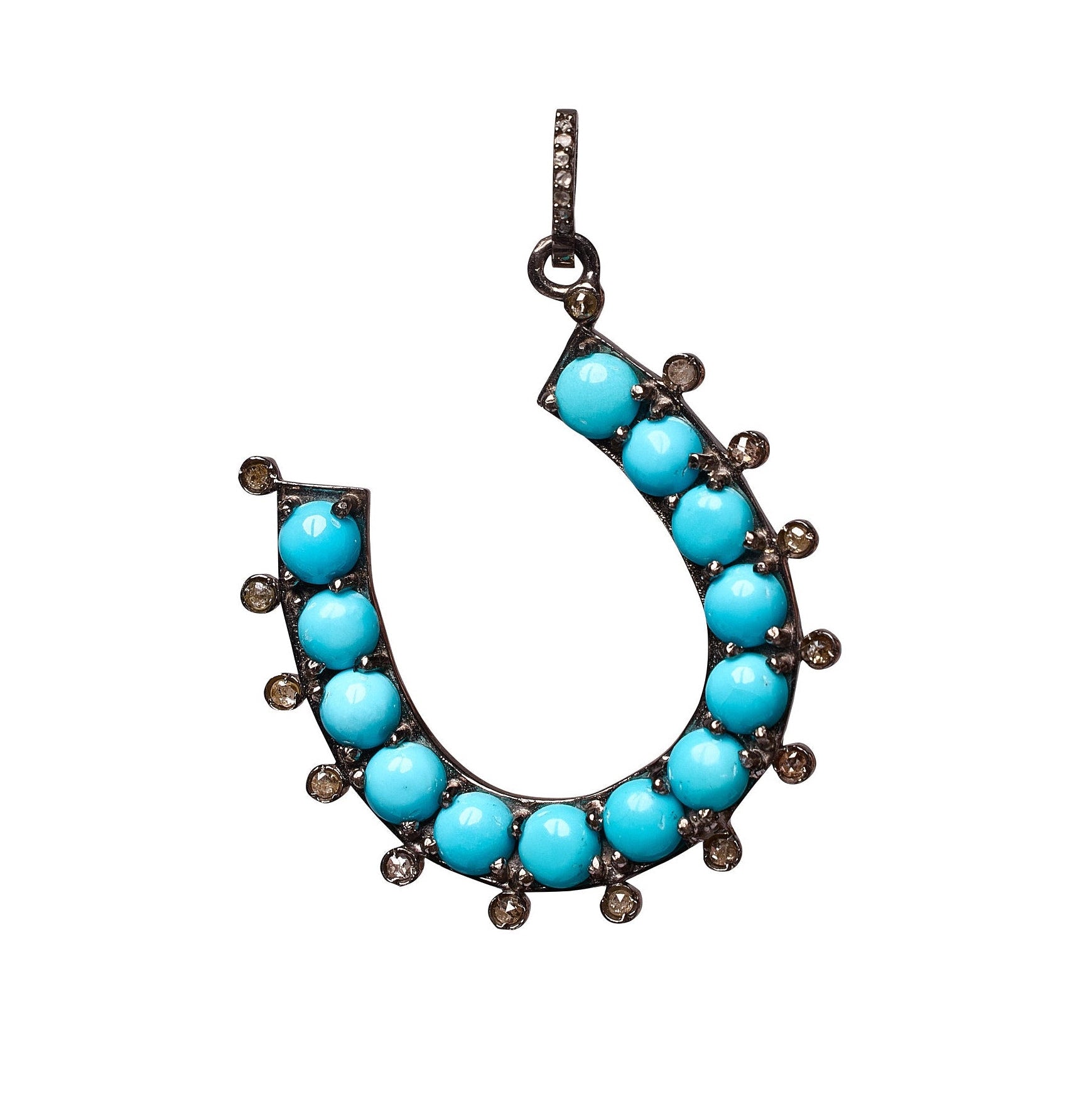 Turquoise and diamond horseshoe charm