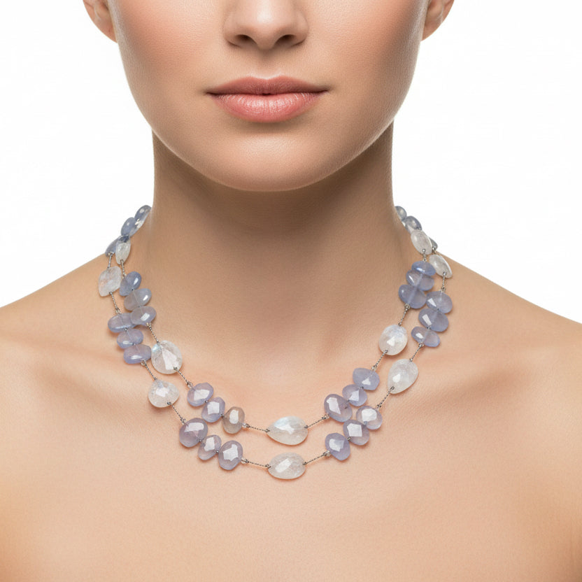 Flat faceted purple chalcedony