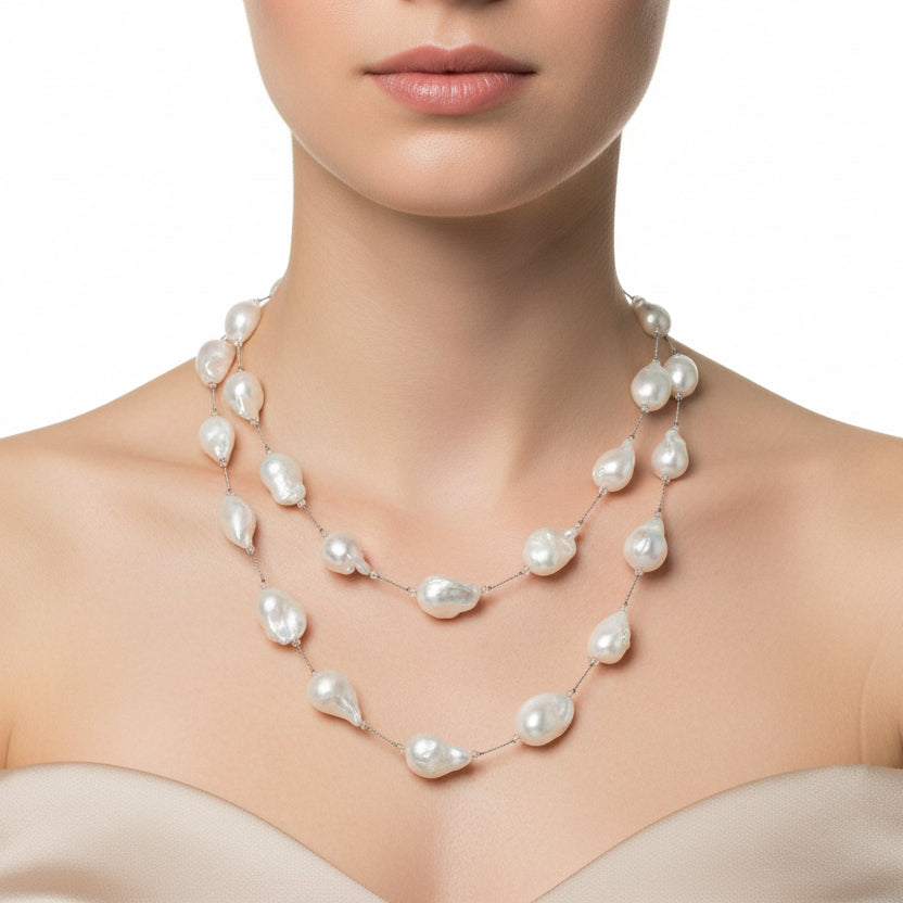 White freshwater baroque pearl necklace