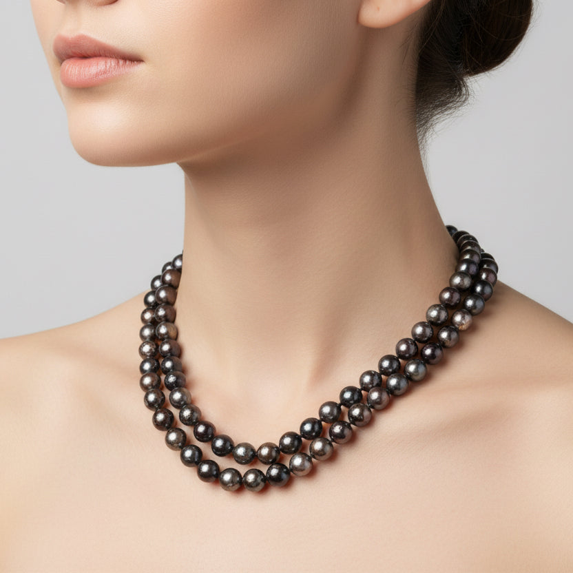 Faceted Tahitian pearl necklace