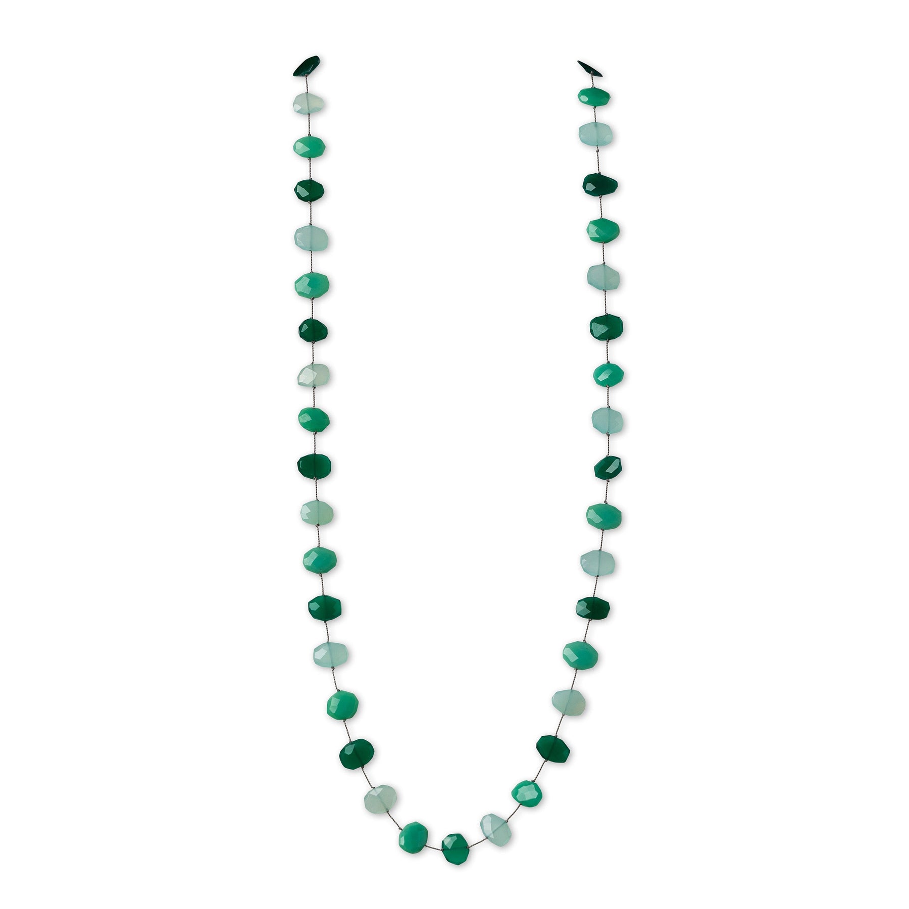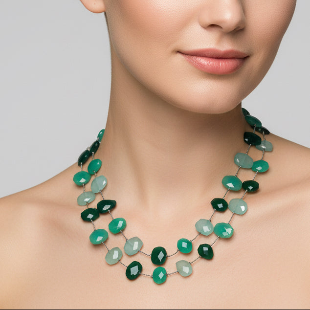 Flat faceted chrysoprase, aqua chalcedony, and green onyx