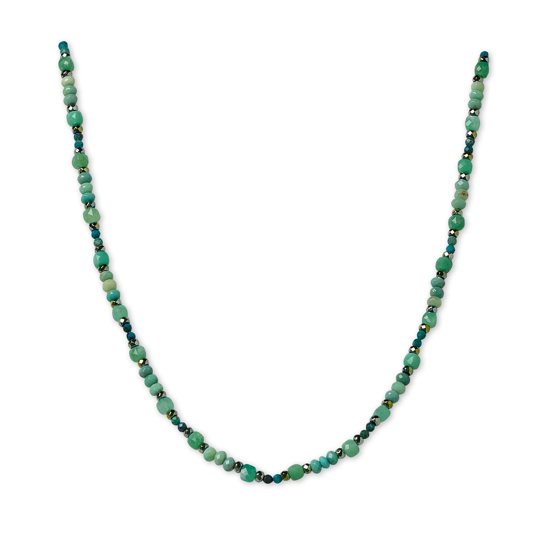 Faceted chrysoprase, chrysocolla, and hematite