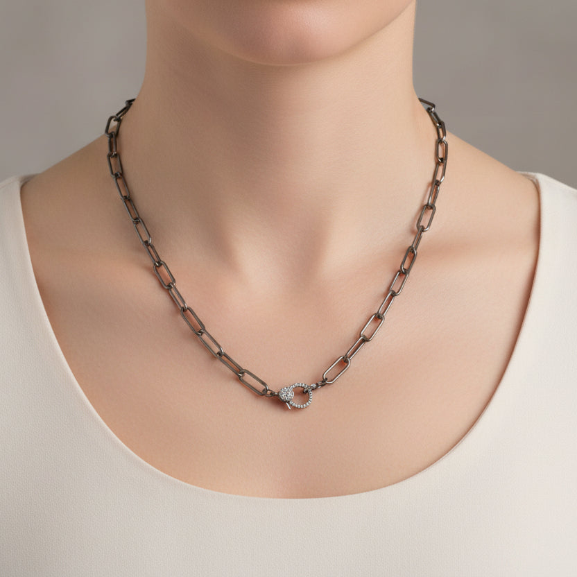 Dark sterling silver paper clip chain