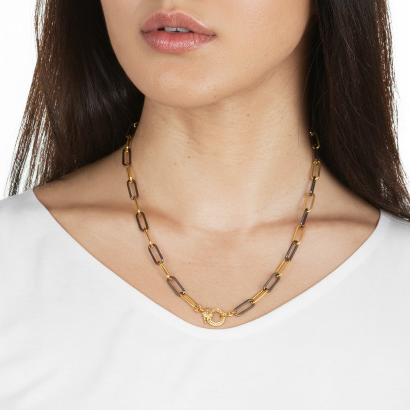 Vermeil and rhodium finish sterling silver paper clip chain