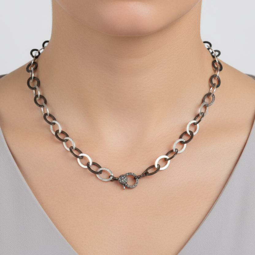 Matte rhodium finish and sterling silver oval flat link chain